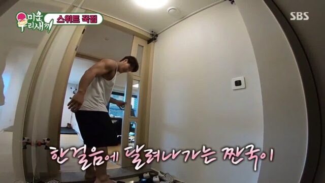새벽에 몰래 배달시키고 안 들키려고 문을 안 닫는 모습이나