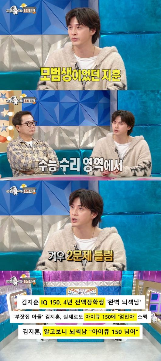 김지훈, 진짜 ‘뇌섹남’이었다..”IQ 150에 수능 수리 2개 틀려”(‘라스’)[핫피플]